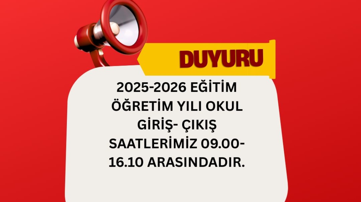 2025-2026 EĞİTİM-ÖĞRETİM YILI OKUL GİRİŞ-ÇIKIŞ SAATLERİ