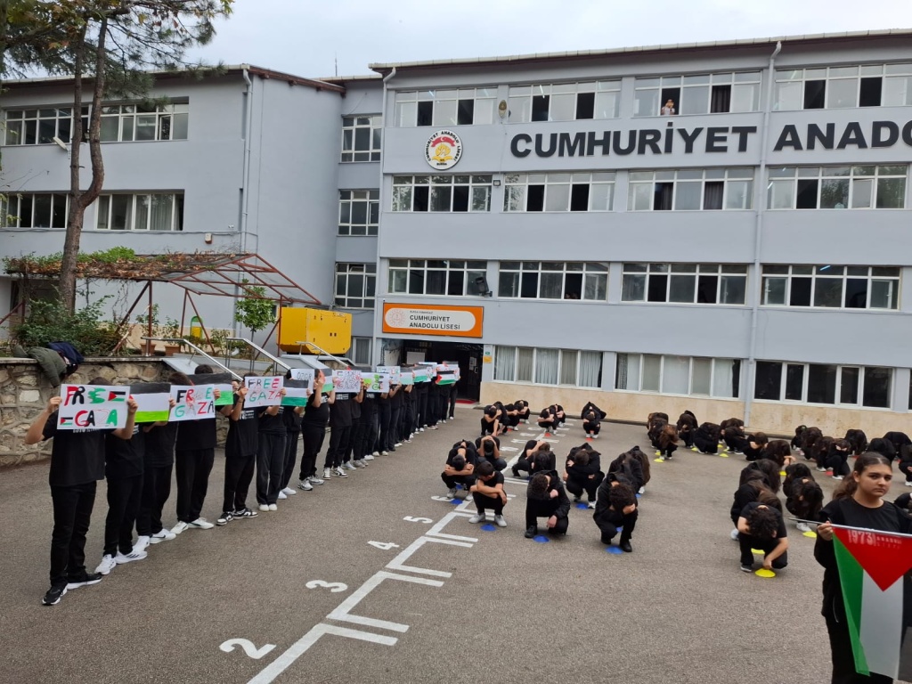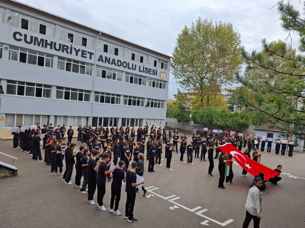 7 Ekim Salı sabahı ülkemizdeki tüm okullarda eş zamanlı olarak Türkiye Yüzyılı Maarif Modeli Erdem Değer Eylem yaklaşımı esas alınarak öğrencilerimizle Filistin'de yaşanan insan hakları ihlallerinin sona erdirilmesine yönelik olarak Filistin farkındalık etkinlikleri düzenlendi.